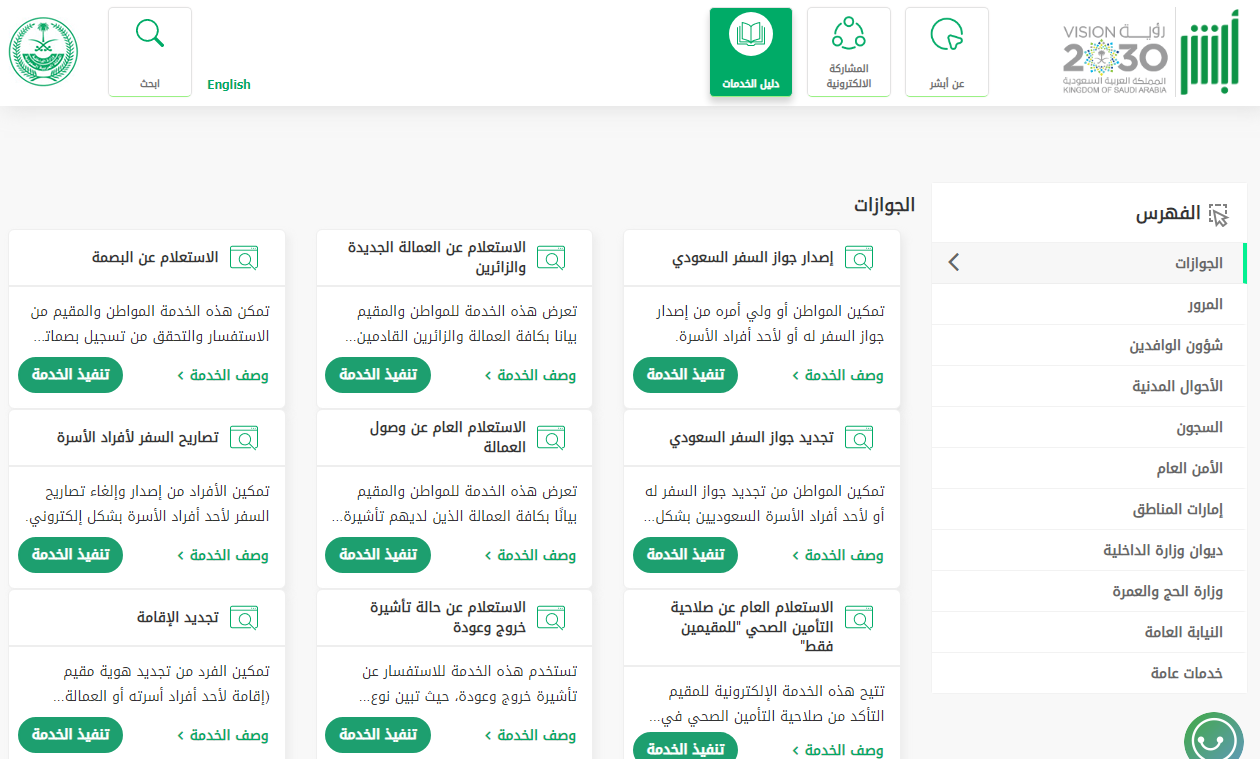 - قم بالدخول بشكل مباشر إلى خدمات الجوازات من خلال منصة أبشر الإلكترونية "من هنا".