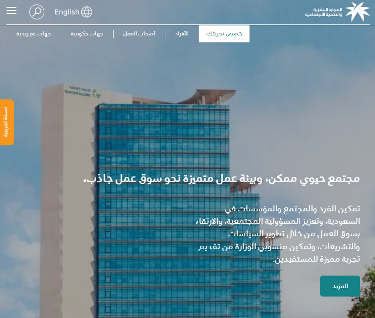 - الدخول إلى الموقع الإلكتروني الرسمي لوزارة الموارد البشرية والتنمية الاجتماعية.