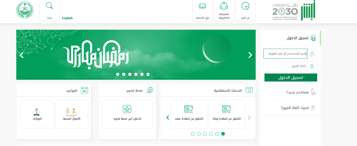 - الدخول على الموقع الرسمي الخاص بمنصة ابشر، من هنا.