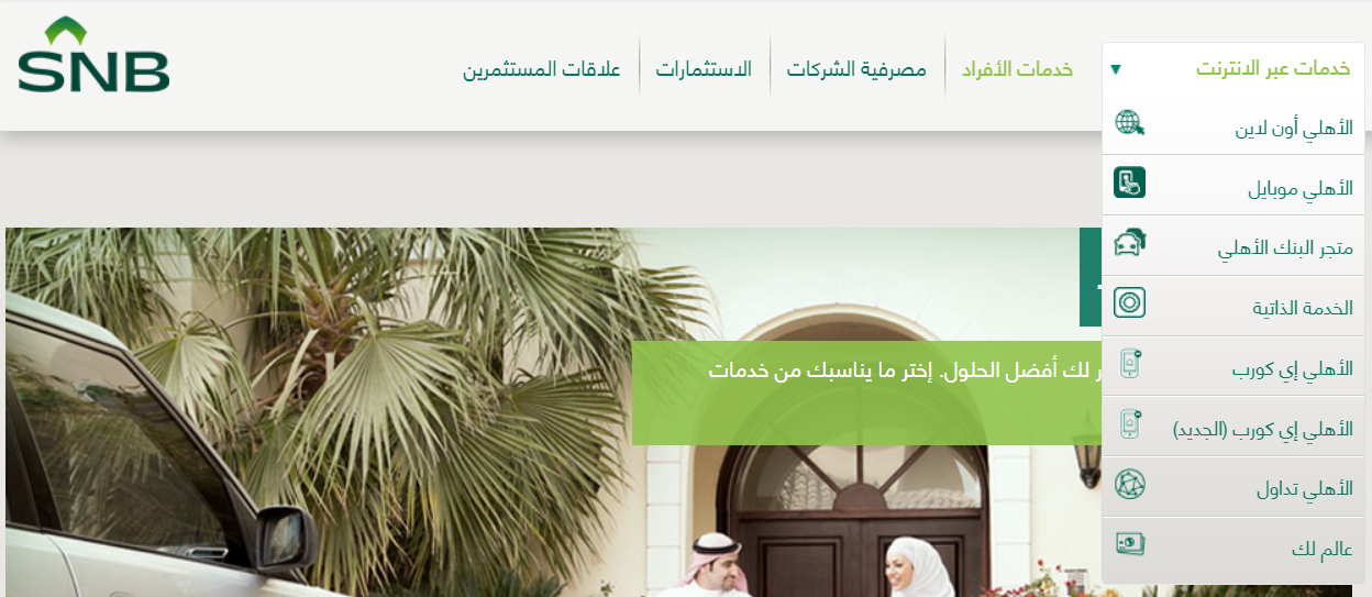- الذهاب إلى الموقع الإلكتروني البنك الأهلي السعودي.