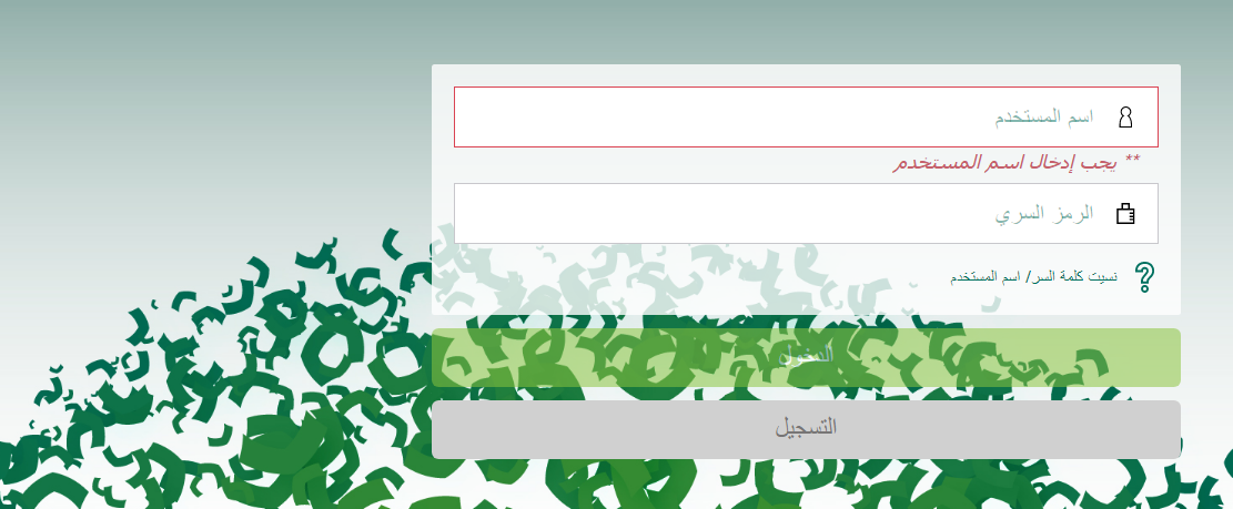 - كتابة اسم المستخدم والرمز السري الخاصين بالعميل.