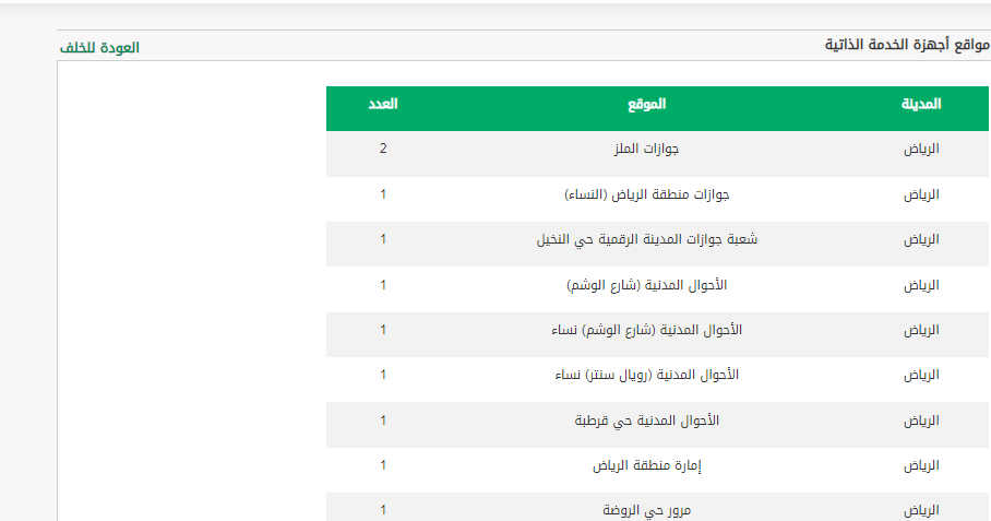 مواقع أجهزة الخدمة الذاتية أبشر في جميع أنحاء المملكة