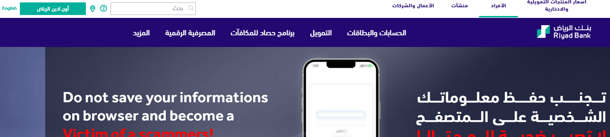 - قم بالدخول إلى الموقع الإلكتروني الرسمي بنك الرياض.