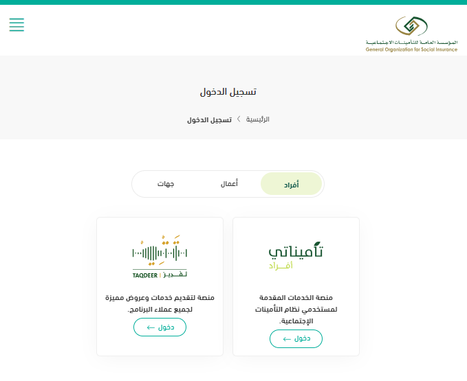 - الذهاب إلى موقع المؤسسة العامة للتأمينات الاجتماعية الإلكتروني.